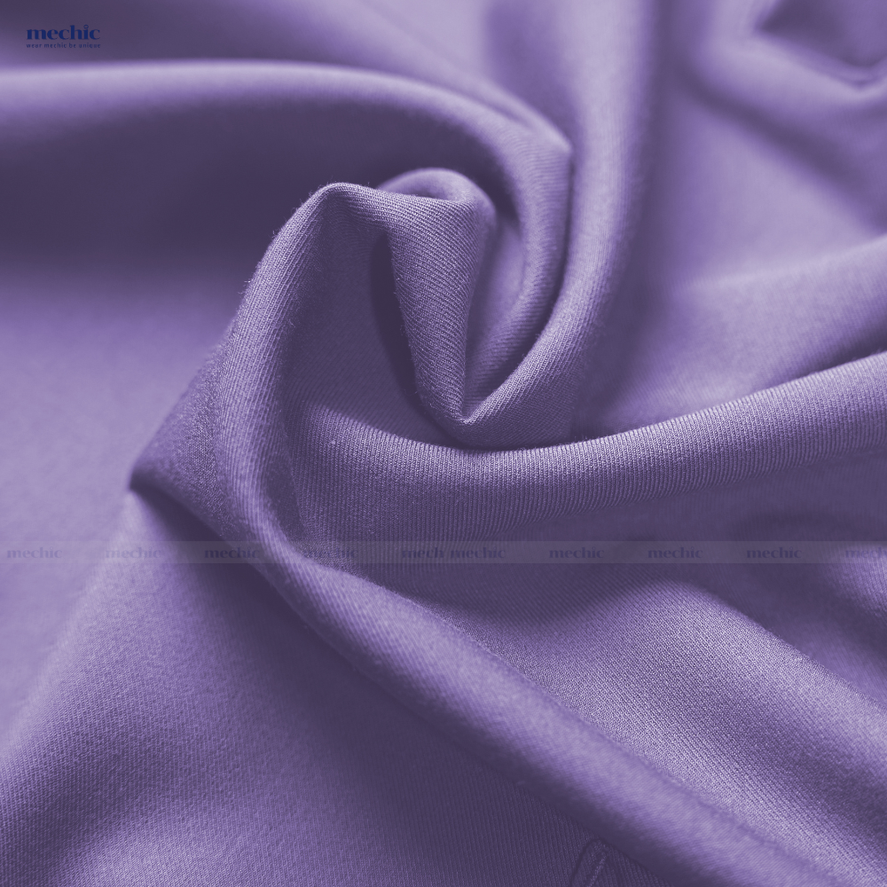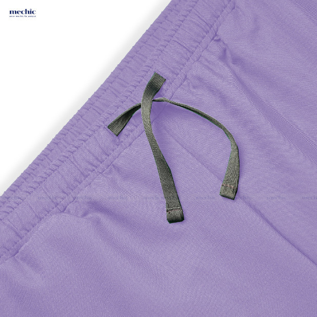 Scrubs nữ cổ tim màu tím Mechic sử dụng chất liệu Poly Rayon Spandex co giãn 4 chiều, đáp ứng tốt yêu cầu về sự thoải mái và độ bền của đồng phục y tế.